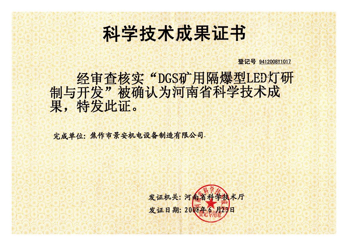 LED燈焦作市科學(xué)技術(shù)進(jìn)步獎