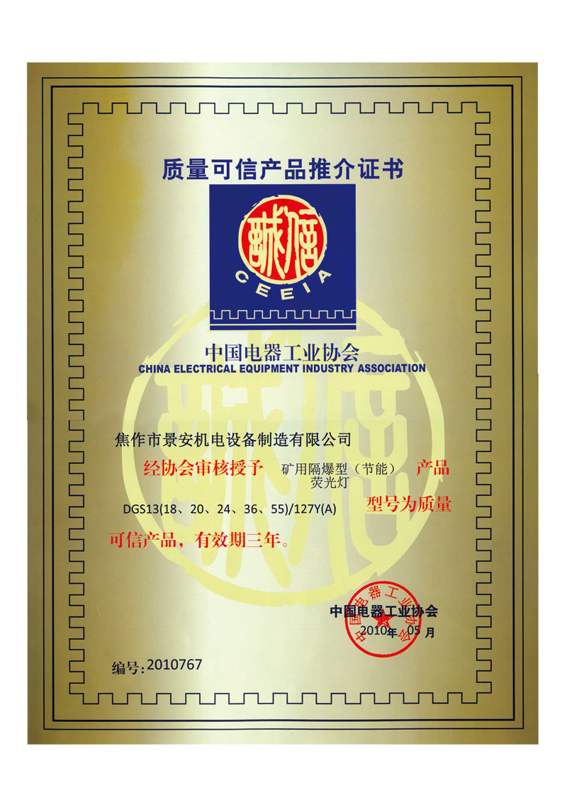 推介證書-熒光燈