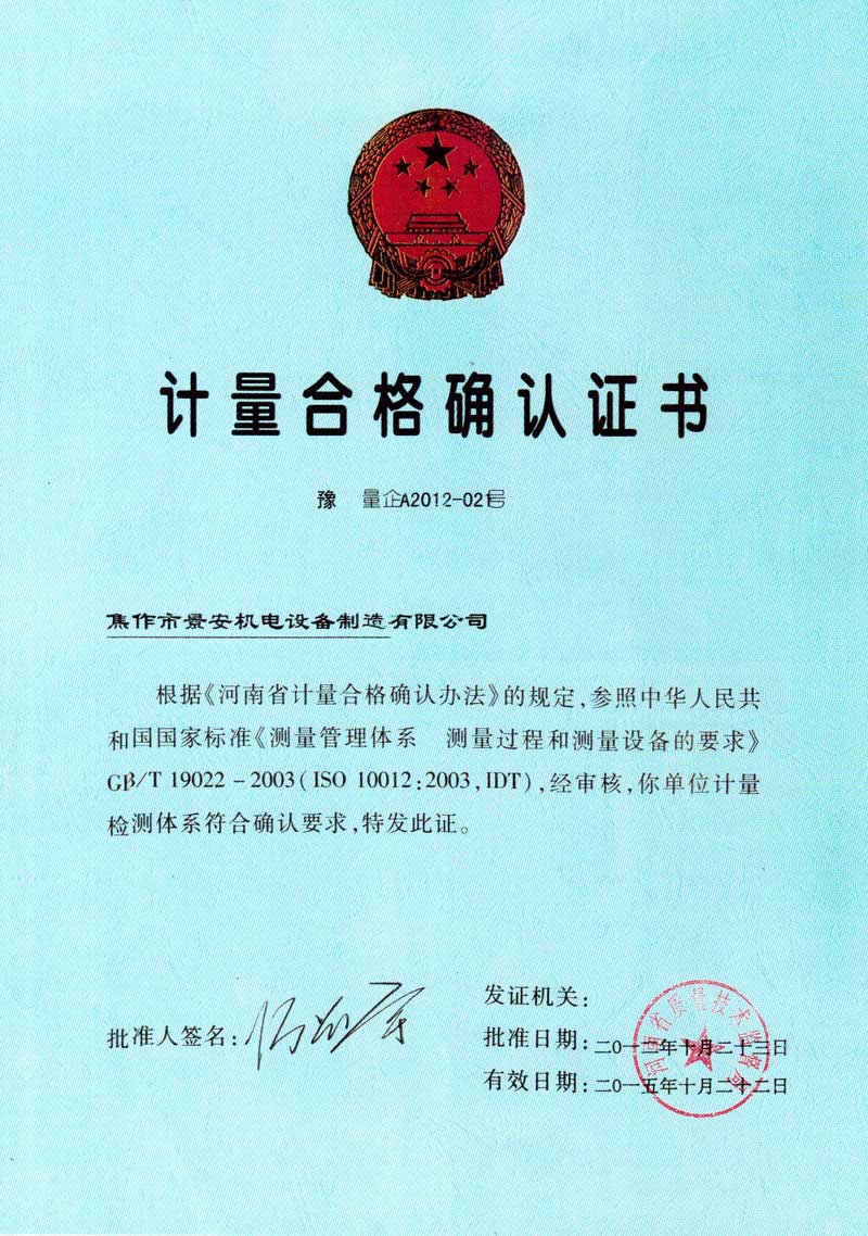 計(jì)量合格確認(rèn)證書(shū)