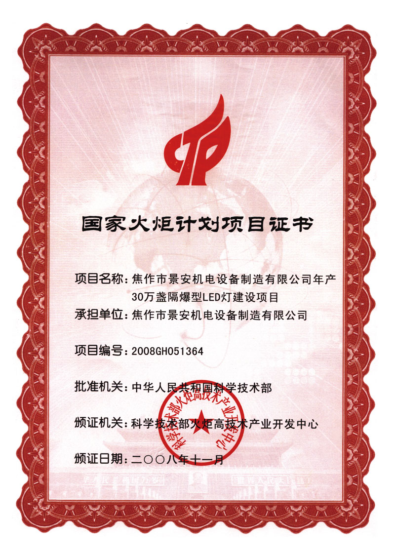 LED火炬計(jì)劃證書(shū)